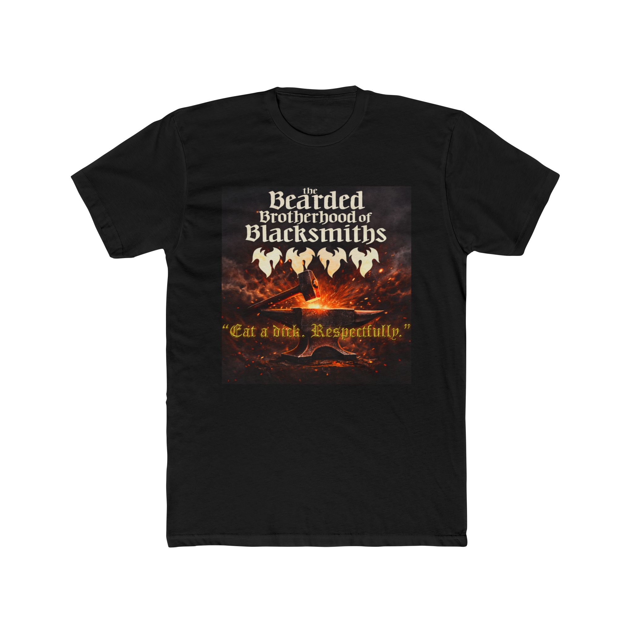 A soft, wearable tribute to time-honored craft. This lightweight cotton crew brings a warm, smoky forge scene to your everyday rotation — embers glowing beneath silhouetted hammers and the bold headline: “The Bearded Brotherhood of Blacksmiths.” It feels like stepping into a story: the low heat of a roaring fire, the clink of metal, and the quiet pride of making something by hand. Wear it while heading to the workshop, trading stories at a maker meet-up, or simply when you want a rugged, grounded look that still reads comfortable and easy. The classic crew cut keeps the focus on the artwork, while the resilient collar and taped shoulders hold shape through repeated wears. Built to meet EU REACH standards and backed by a 2-year EU warranty, this tee balances authentic style with dependable quality.